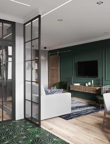 墻架,也稱為墻架成型,是最近流行的另一種外觀,您可以了解原因。無疑為任何房間(在這種情況下為客廳)增添了一絲維多利亞時代的優雅。它不僅使空間感覺成熟(而不是過時),而且它還可以像在一天中為一幅畫框畫一樣框住電視。涂上幾層森林綠色的油漆,你很快就會像歐洲皇室一樣生活。