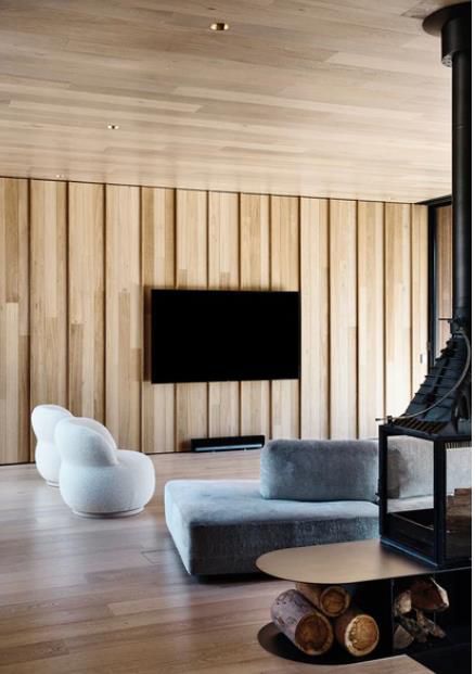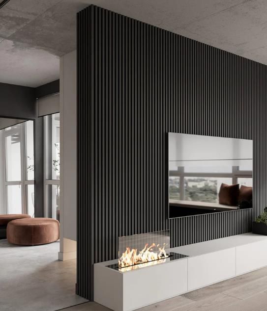 如果您想讓客廳保持黑暗和簡約,同時仍然融入一些紋理,那么電視后面的黑色木板條墻可能是最好的選擇。實現這種外觀的最佳方法是給自己買一些 黑色木板條墻板。在那之后,你只需要一個里面有壁爐的電視柜。當您發現時,請告訴我們!