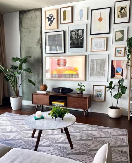 它本身不是口音墻,但至少值得一提。裱框藝術印刷品,在電視周圍創建了這個畫廊墻,這基本上與藝術沒有區別。絕對不像我們看過的其他款式那樣簡約,但如果你想要更折衷一點的東西,它仍然很漂亮。