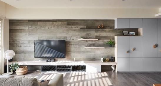 開放式擱板,除了可以放置電視外,還可以用作書架或存放裝飾品。