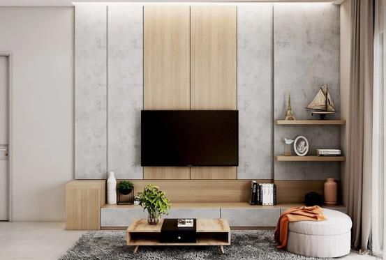 選擇不同的顏色來裝飾電視架是一種巧妙而高效的美學方式。淺色木紋彩電架子搭配精美的小茶幾,讓空間更顯豪華氣派。