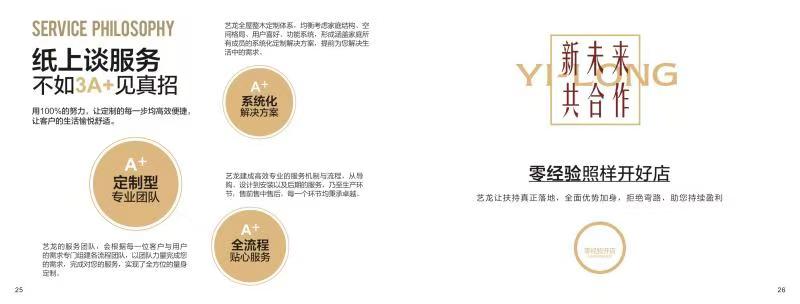 藝龍整木定制 ——秉承“高工藝、高品質、高信譽”經營理念,以“環保、智能”為宗旨,讓消費者體驗到定制家居帶來的便捷和個性!